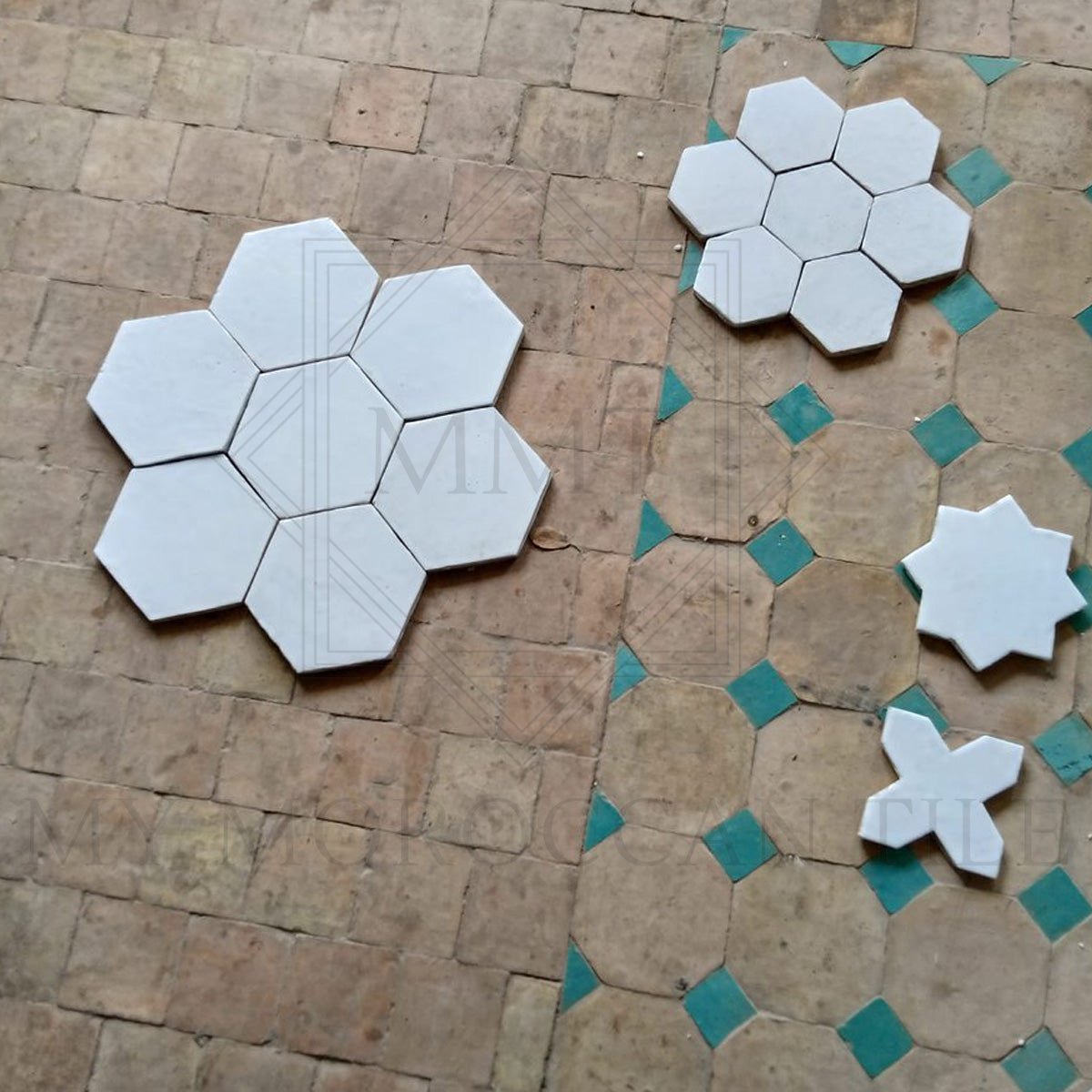 Carreaux hexagonaux marocains en terre cuite – 10 x 10 cm et 15 x 15 cm